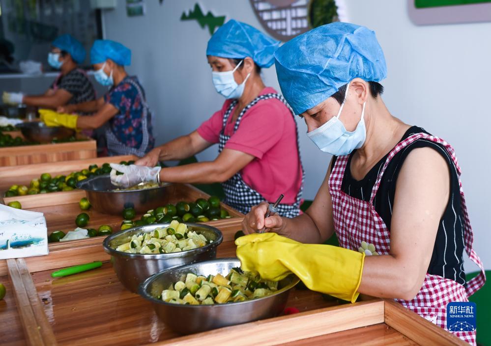 8月20日,在浙江省建德市三都鎮松口村的小青柑共富工坊,工人忙著開果、挖果。