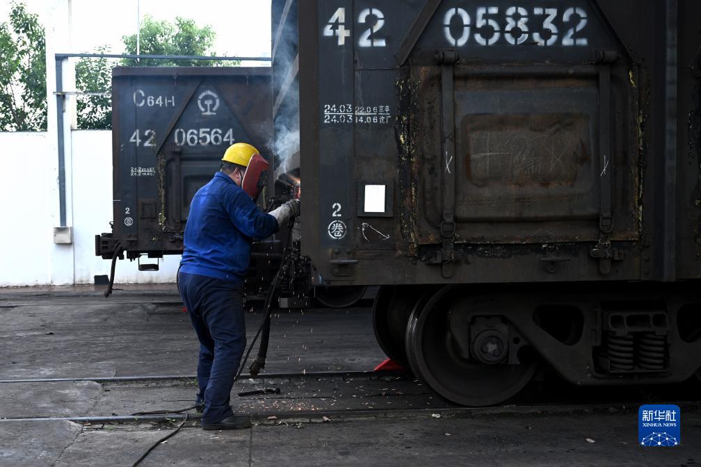正值暑運,中國鐵路上海局集團有限公司杭州北車輛段合肥運用車間臨修班組的熔接工們堅守崗位,忙著對列車車體的破損及變形部位進行焊接維修,保障列車的安全開行。