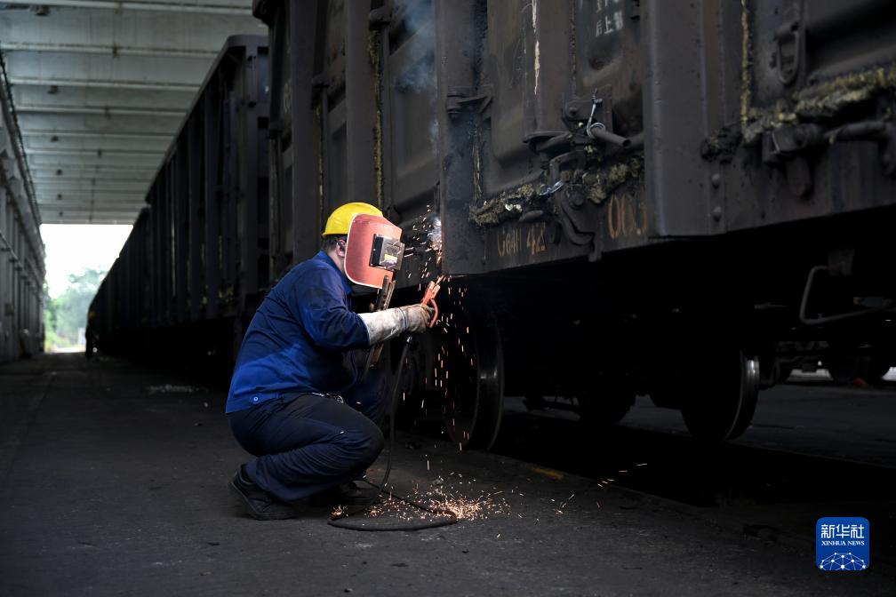 正值暑運,中國鐵路上海局集團有限公司杭州北車輛段合肥運用車間臨修班組的熔接工們堅守崗位,忙著對列車車體的破損及變形部位進行焊接維修,保障列車的安全開行。