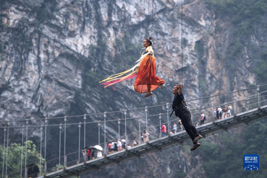 8月20日,游客在湖北省恩施州建始縣地心谷景區游玩。