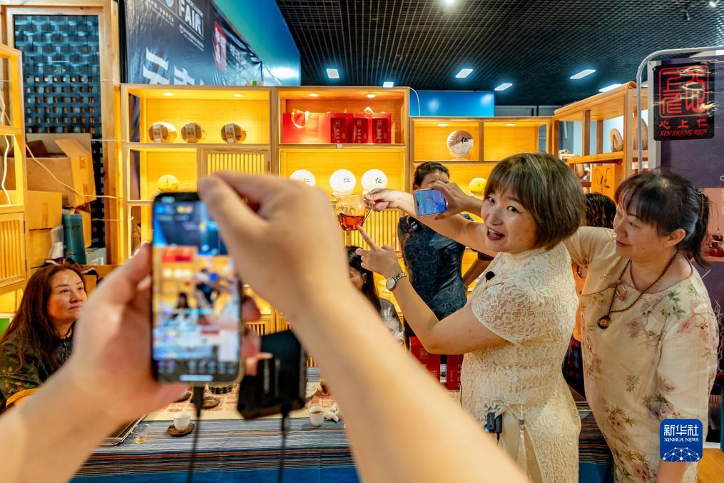 8月17日,展商在第七屆中國—南亞博覽會南亞茶葉節上直播賣貨。