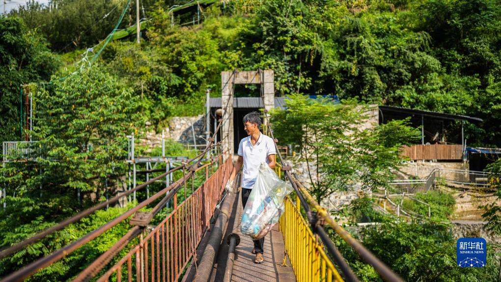 馬選軍在農家樂附近拾撿垃圾(8月15日攝)。