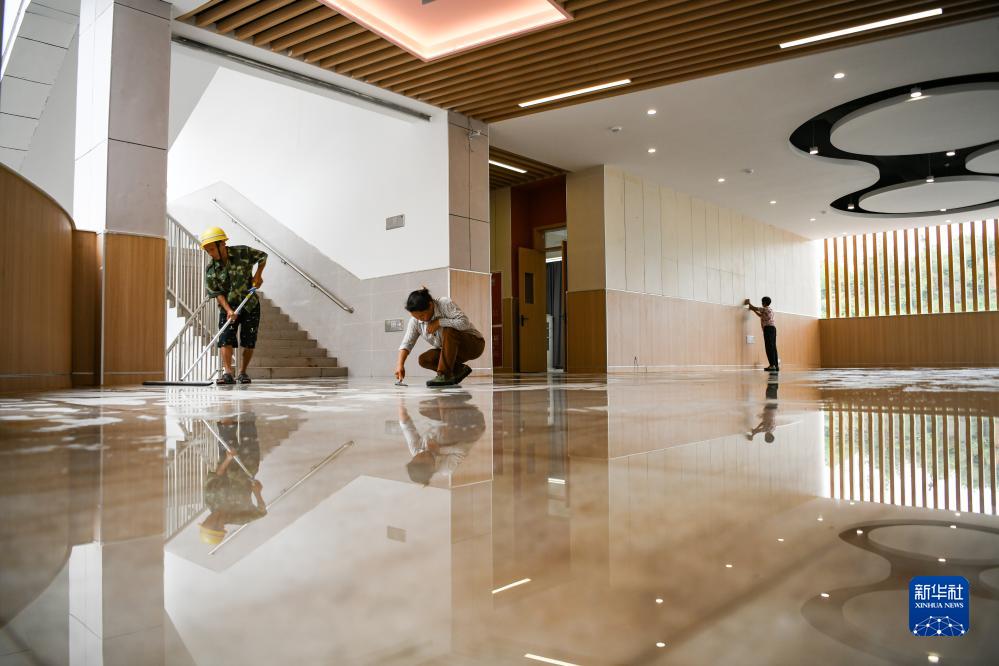 8月20日,在四川省宜賓市第三中學三江校區(高中部),工人在進行保潔工作。