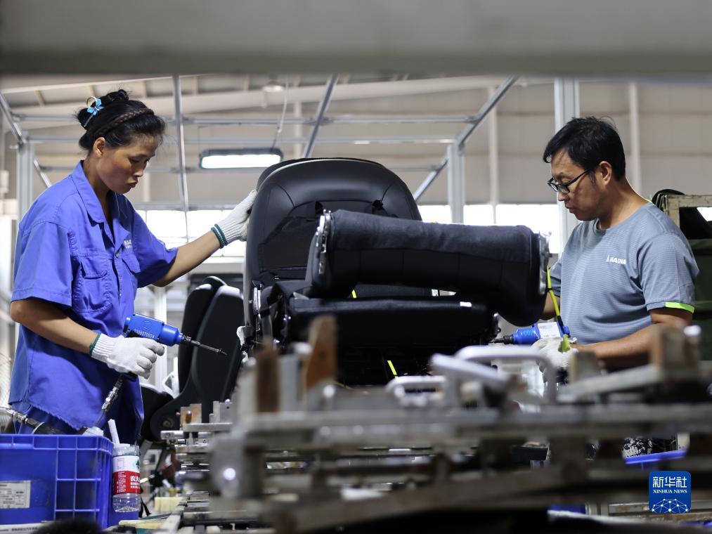 8月19日,工人在麥格納宏立汽車系統(河北)有限公司生產車間工作。