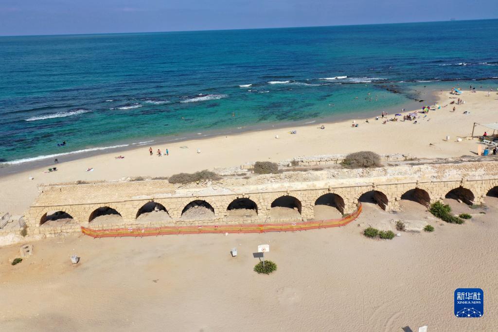 這是8月20日在以色列城市凱撒里亞拍攝的古羅馬渡槽遺址(無人機照片)。