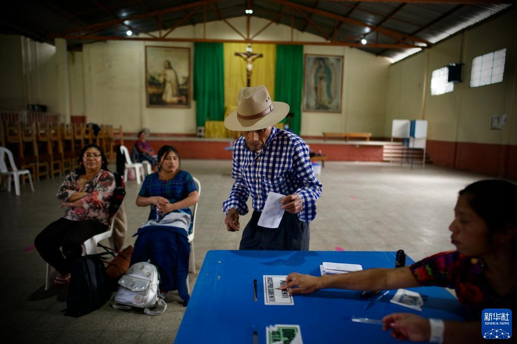 8月20日,在危地馬拉圣地亞哥-薩卡特佩克斯市,一名選民在投票站投票。