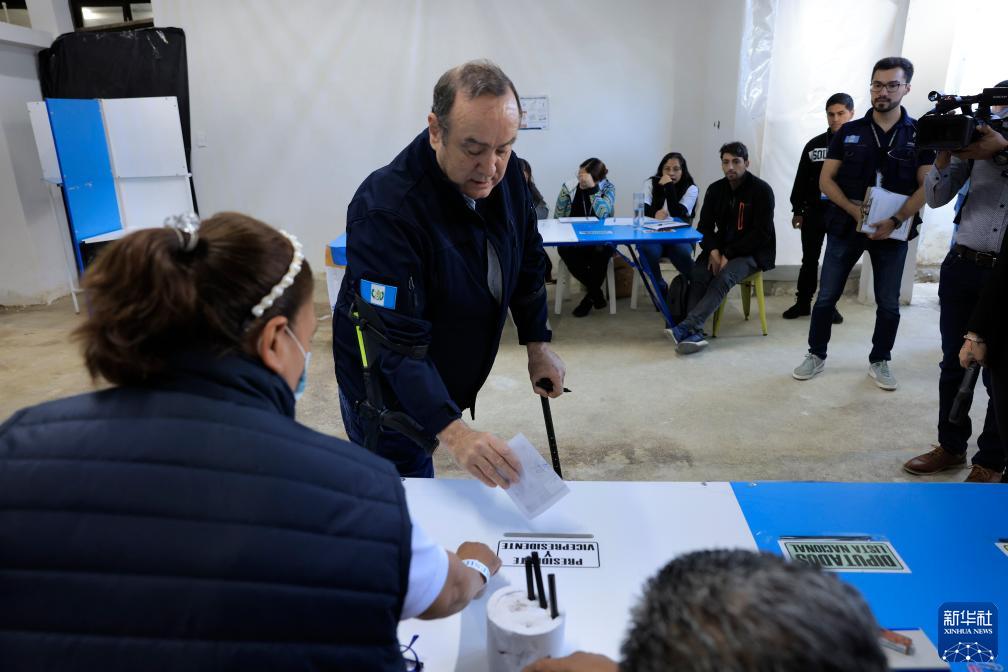 8月20日,在危地馬拉首都危地馬拉城,?,F任總統賈馬太在投票站投票。