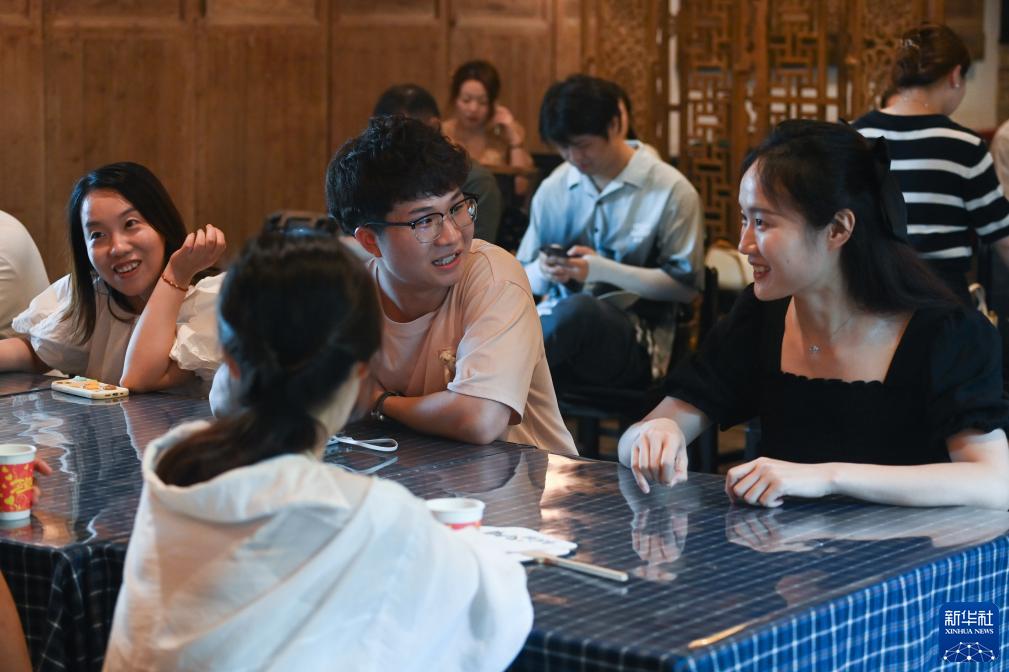 8月20日,“‘才’匯七夕·‘緣’來諸暨”青年人才七夕聯誼活動在浙江省諸暨市東白湖鎮舉行,“十里紅妝”“尋愛之旅”“彩繪紙傘”“乞巧祈?!薄粋€個具有傳統文化韻味的游戲活動,讓在場的單身青年人才沉浸式體驗豐富多彩的民俗文化,交友結緣。