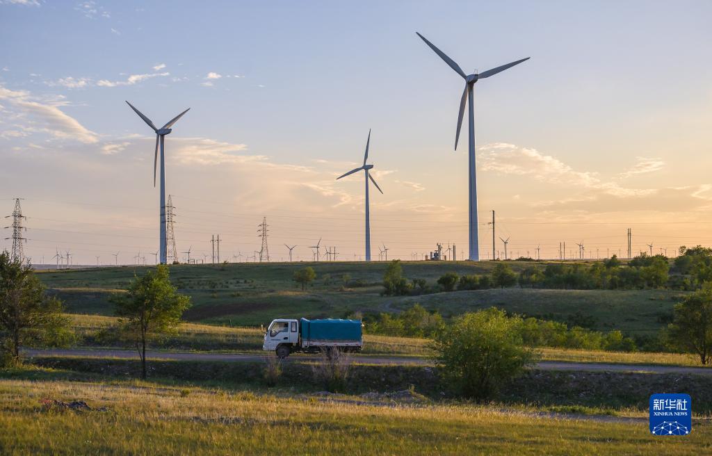 這是矗立在河北張家口張北縣境內的風機(8月18日攝)。截至今年七月底,冀北電網風電裝機達2595.2萬千瓦。