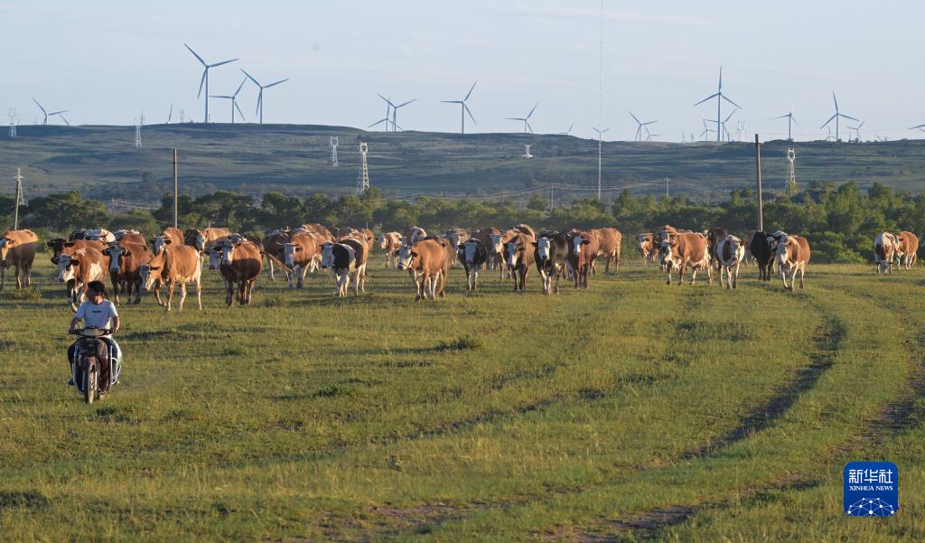 這是矗立在河北張家口張北縣境內的風機(8月18日攝)。截至今年七月底,冀北電網風電裝機達2595.2萬千瓦。