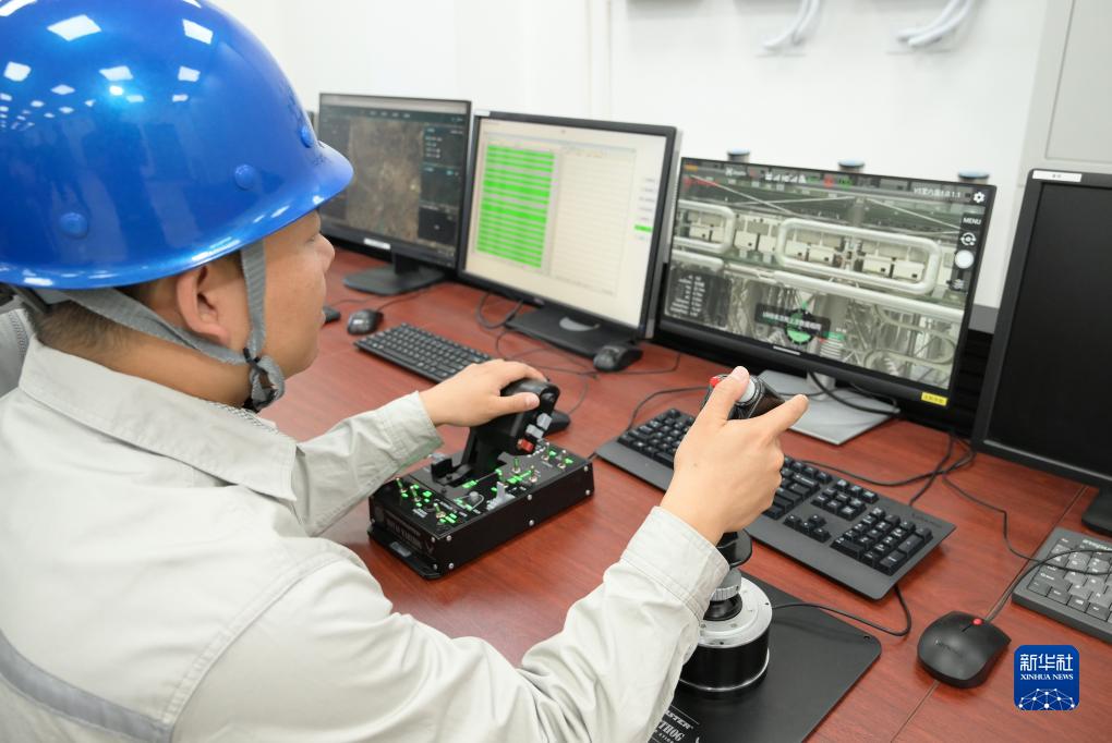 在河北張家口張北柔直工程中都換流站,工作人員在操控無人機對換流站內核心設備進行巡檢(8月19日攝)。截至目前,張北柔直工程已累計實現對北京、河北地區輸送超210億千瓦時的清潔電力。