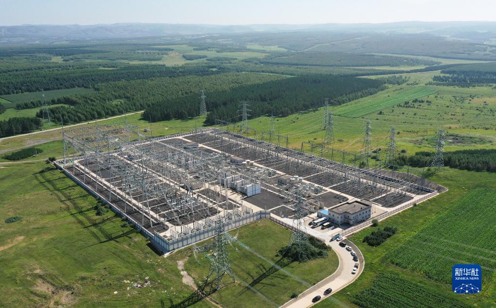 國網冀北電力500千伏御道口變電站位于河北承德塞罕壩腹地,清潔的風力和光伏發出的“綠電”從這里送出,是冀北地區綠色能源的重要紐帶(8月20日攝,無人機照片) 。