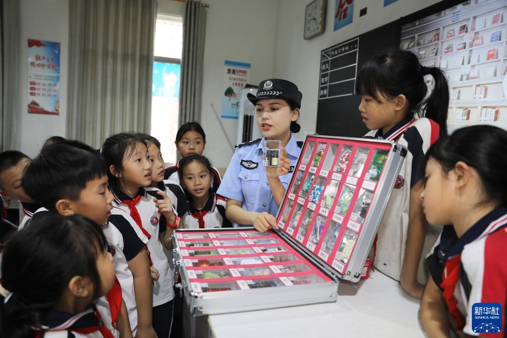 8月21日,民警在貴州省赤水市第三小學給學生講解禁毒知識。
