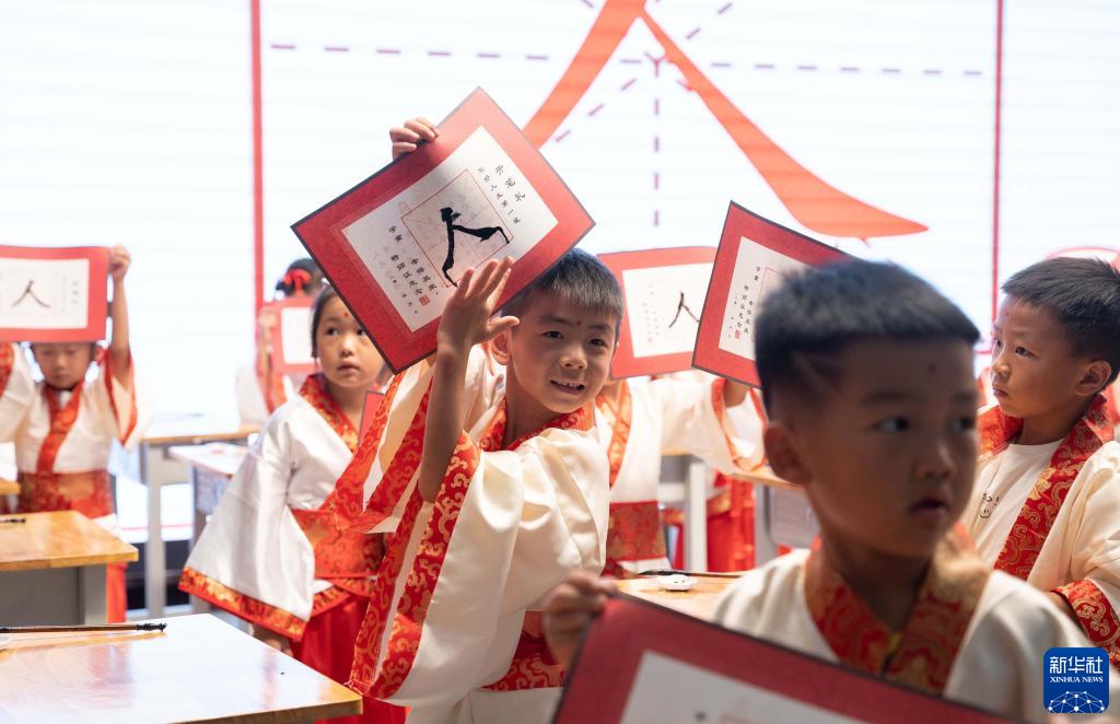 8月21日,一年級新生在貴州省銅仁市雅禮學校新生入學儀式上舉行開筆禮。