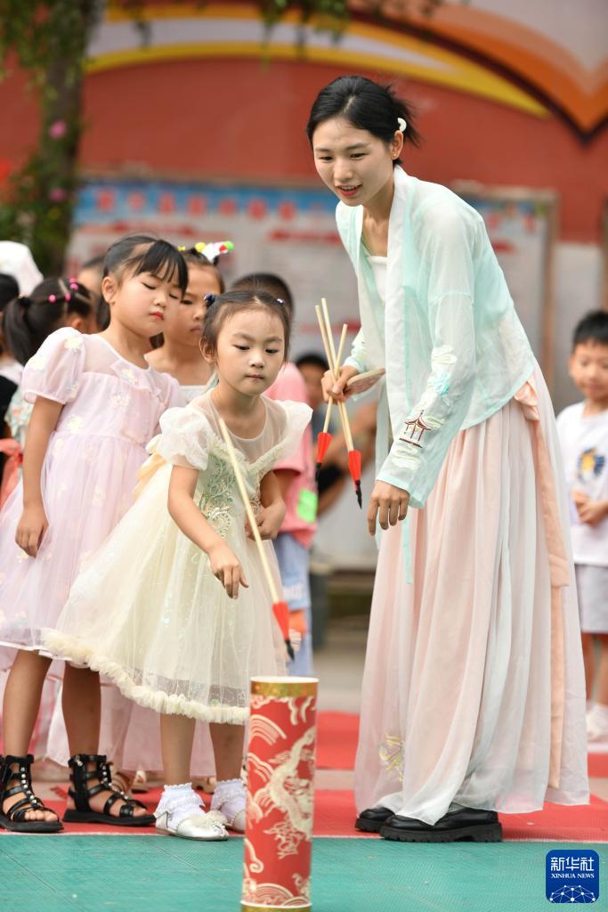 8月21日,貴州省黔東南苗族侗族自治州黃平縣新州鎮第二小學的師生一起參加投壺趣味活動。