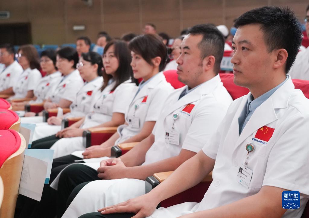 8月21日,北京同仁醫院第2批援瓦努阿圖中國醫療隊隊員出席出征授旗活動。
