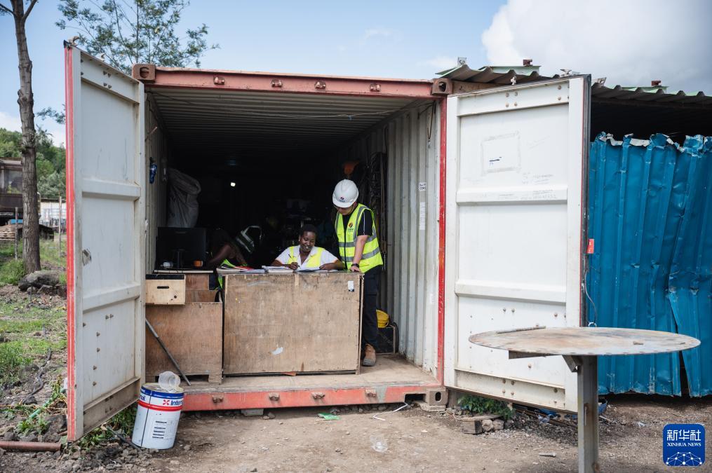 5月26日,施工人員在肯尼亞納庫魯市的索西安地熱電站項目建設現場進行倉庫工器具定期檢查。
