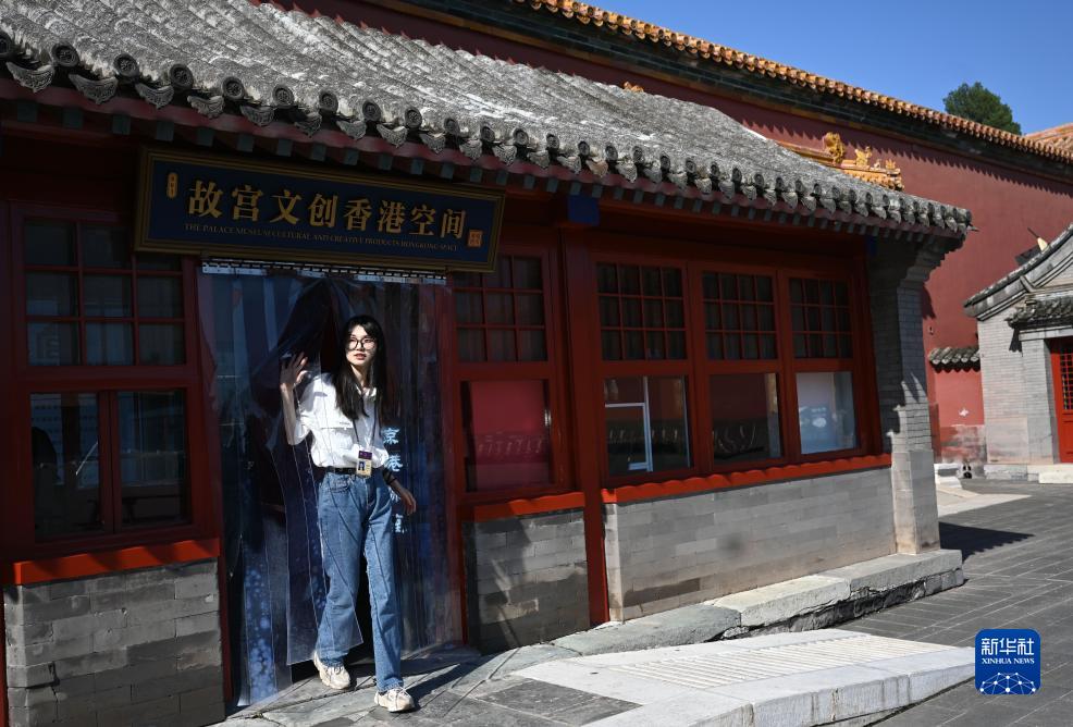 8月21日,澳門青年學生劉玳菱從故宮文創香港空間內走出。