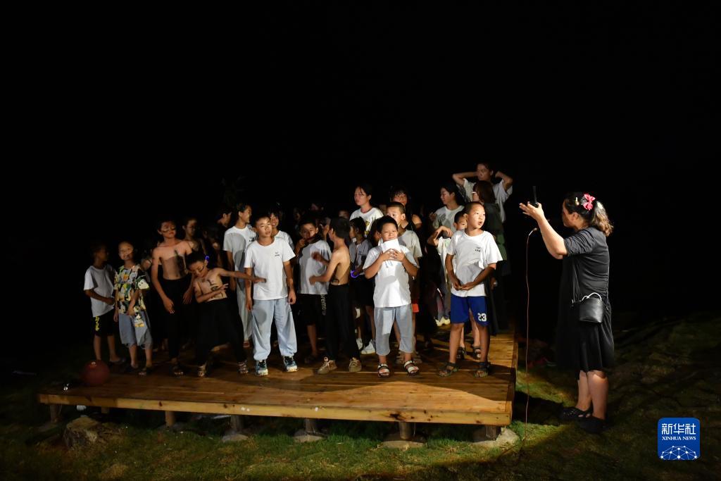 8月20日,周燕(右)向觀眾介紹參與演出的孩子們。