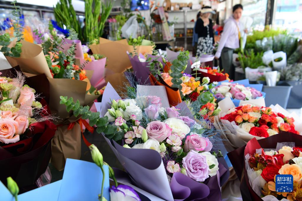 “七夕”將至,鮮花市場呈現俏銷勢頭,不少商家精心準備花卉產品,吸引顧客前來購買。