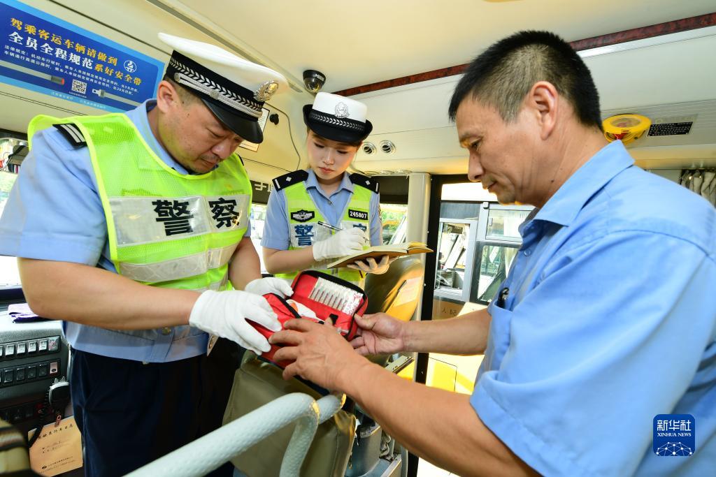 秋季開學臨近,多地組織民警對轄區內校車進行安全檢查,及時排除隱患,確保學生乘車安全。