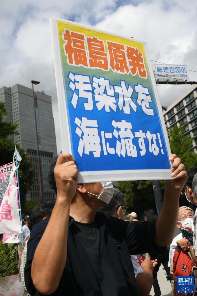 8月22日,日本民眾在東京首相官邸前緊急集會,抗議政府無視民意啟動核污染水排海。