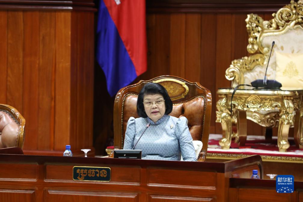 8月22日,柬埔寨新一屆國會主席昆索達莉在首都金邊的國會會議上發言。