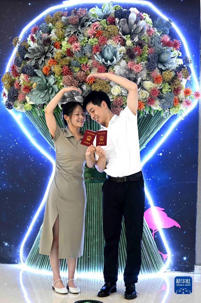 當日是七夕,這一天是我國民間傳說中牛郎織女鵲橋相會的日子,許多新人選擇在這一天登記結婚。