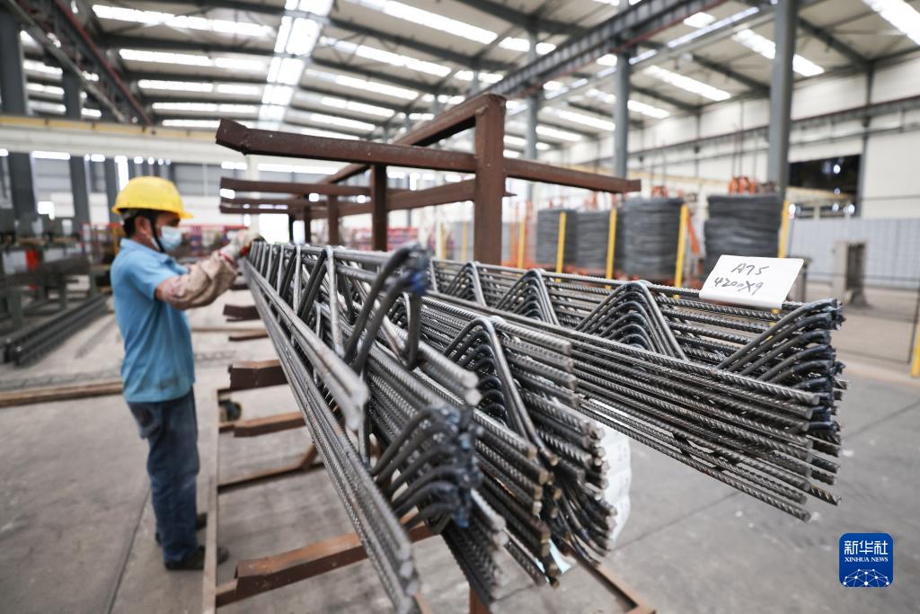 8月22日,海南定安縣新竹鎮華潤智筑科技(定安)裝配式示范產業基地工人在擺放鋼筋。