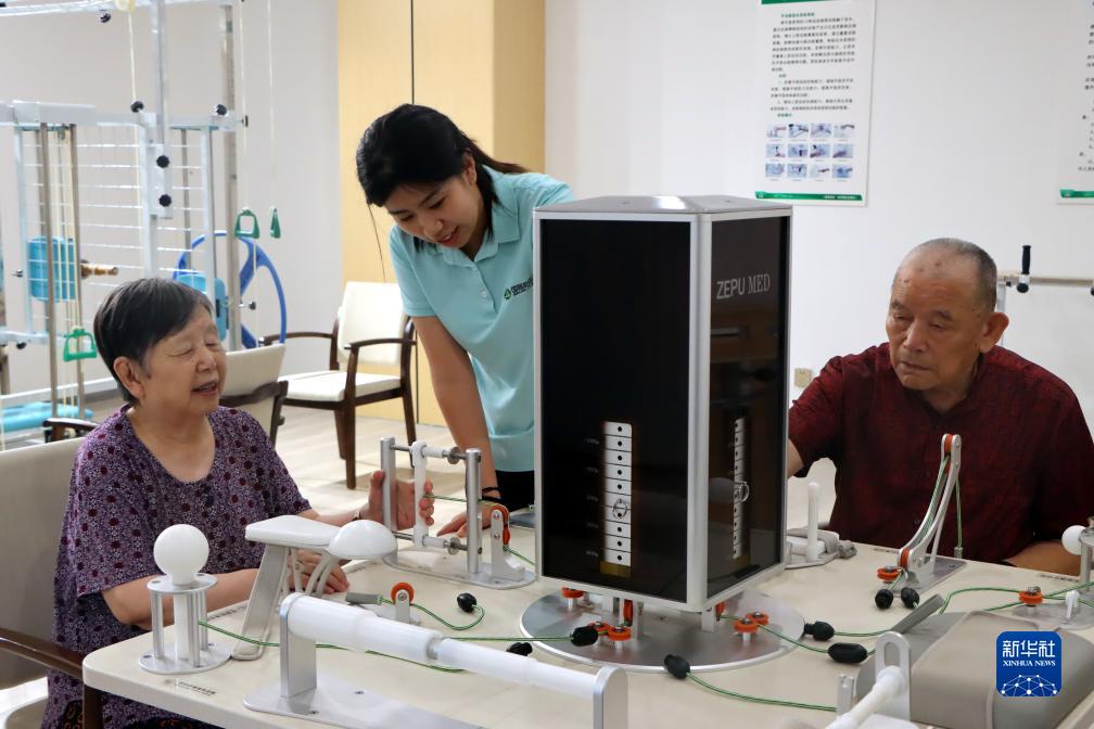 8月21日,老人在位于山東省濱州市沾化區大高鎮國昌怡心園內的康復小屋做上肢康復訓練。