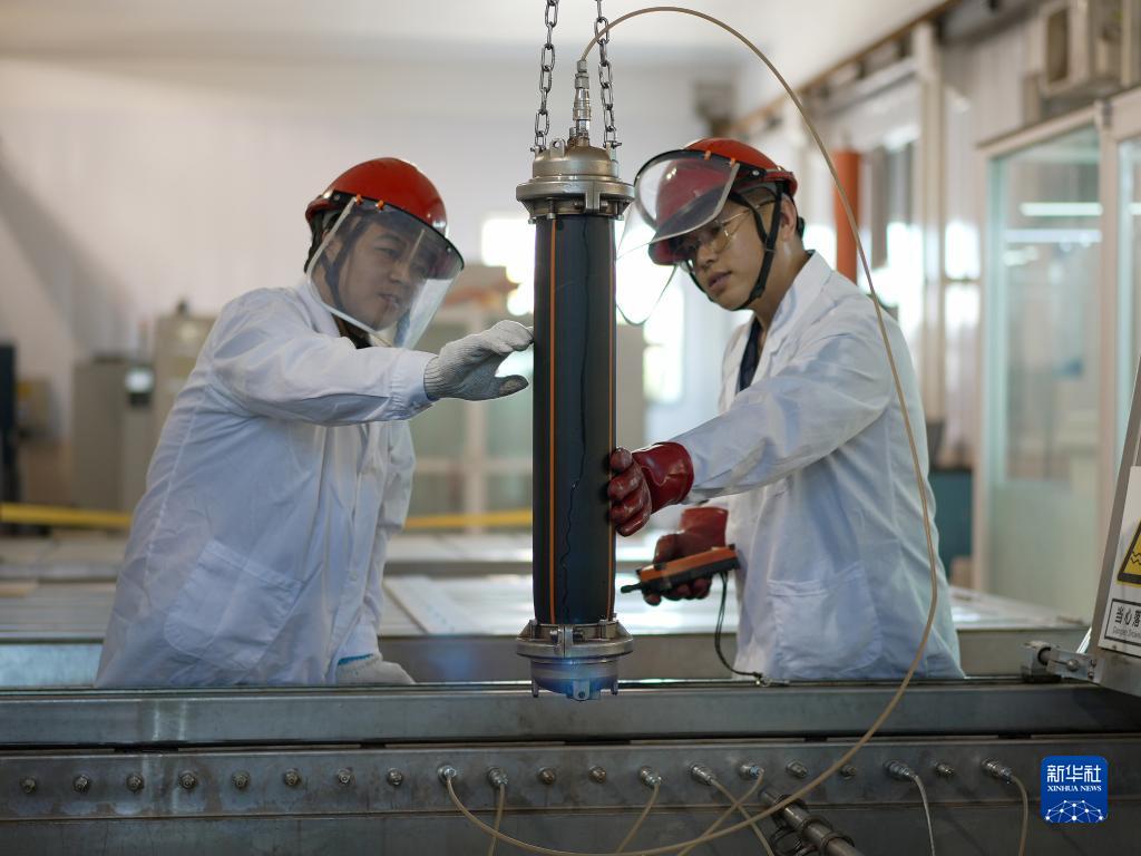 8月22日,工作人員在河北省滄州市孟村回族自治縣河北一塑管道制造有限責任公司靜液壓實驗室進行產品檢測。