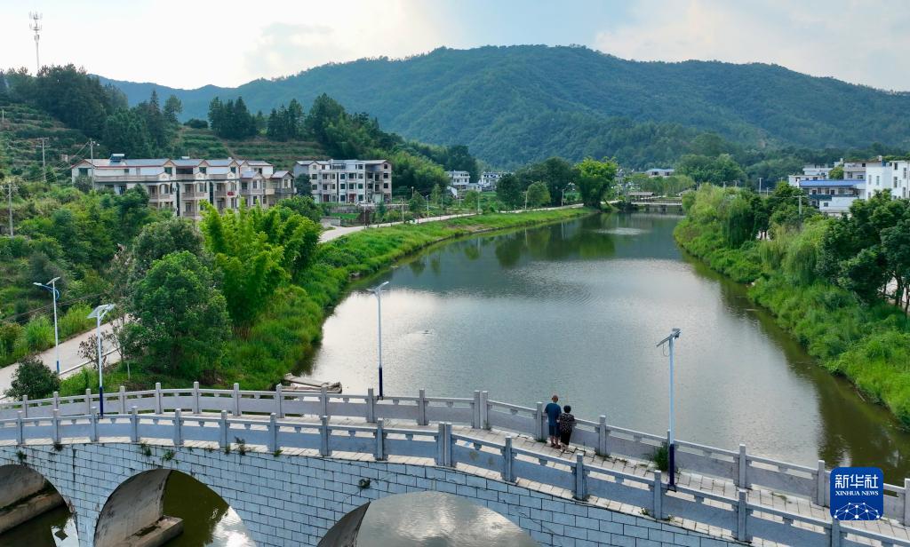 8月17日,鄭其輝陪伴妻子散步(無人機照片)。