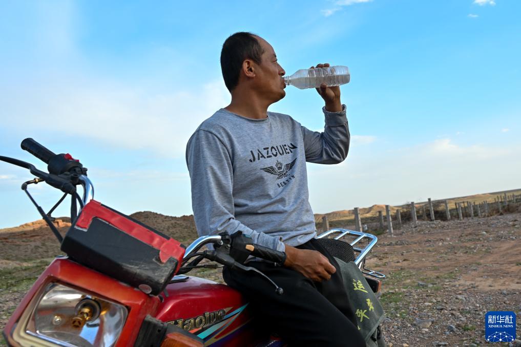 8月20日,董海寧在巡查途中喝水。