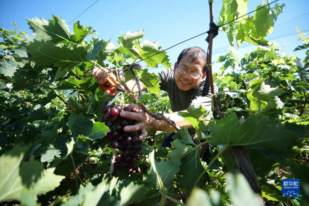 近日,河北省青縣的梨、葡萄陸續成熟,農民開始適時收獲,不少游客前來采摘,田間地頭呈現出一派豐收的景象。