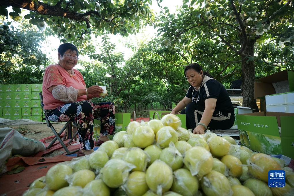 近日,河北省青縣的梨、葡萄陸續成熟,農民開始適時收獲,不少游客前來采摘,田間地頭呈現出一派豐收的景象。