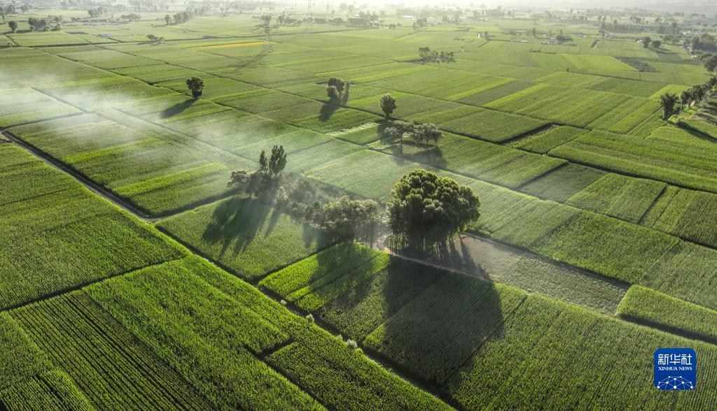 蘆河岸邊的良田,玉米豐收在望(8月18日攝,無人機照片)。
