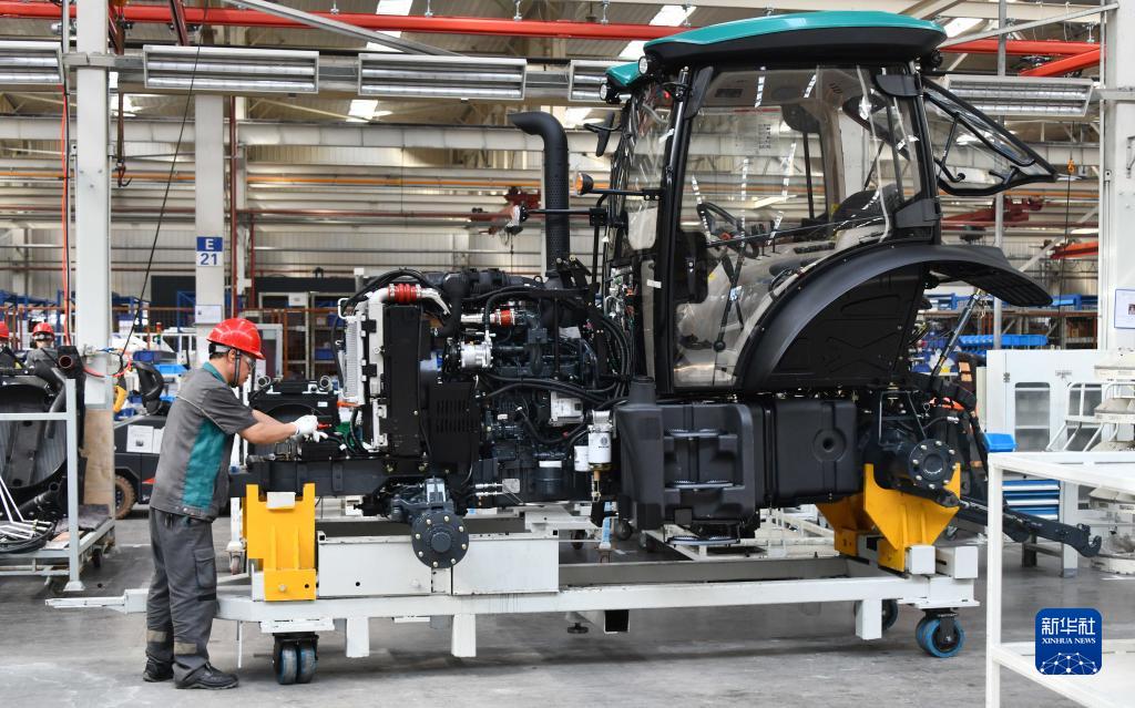 8月22日,在位于山東省濰坊市坊子區的濰柴雷沃智慧農業科技股份有限公司,工人在車間組裝生產農機設備。