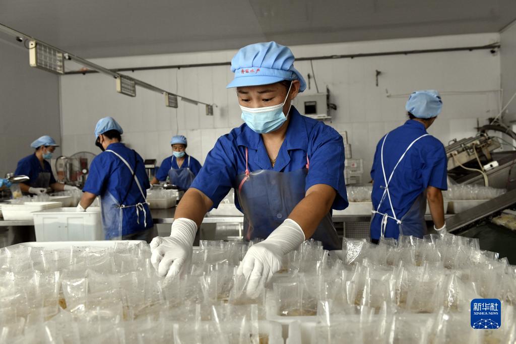 8月22日,在山東省濱州市沾化區馮家鎮隆旺水產的加工車間內,工人們對海蜇進行標準稱重。