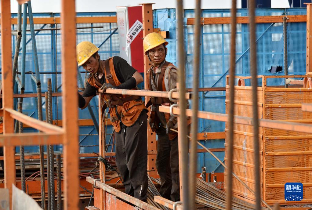 8月22日,工人在深圳城建羅湖超高層項目塔樓作業。