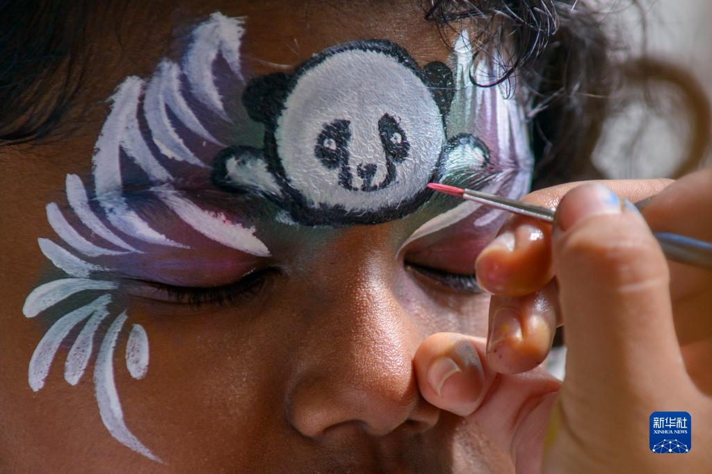 8月23日,在馬來西亞吉隆坡附近的馬來西亞國家動物園,民眾體驗熊貓元素的臉部彩繪。
