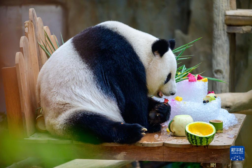 在馬來西亞國家動物園大熊貓保護中心內,中國旅馬大熊貓夫婦“興興”和“靚靚”23日迎來了17歲生日。