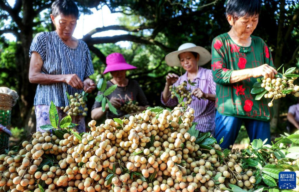 近日,四川省瀘州市的村民開始忙著采收桂圓。近年來,該市從福建等地引進優良品種進行品種結構調整,并探索“公司+專合社+農戶”模式發展桂圓產業,促進農民增收致富。據當地農業部門統計,目前該市桂圓種植面積達30萬畝,今年預計產量10萬噸。