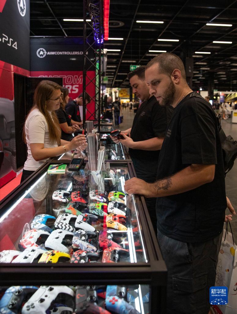 8月23日,人們在德國科隆舉辦的科隆國際游戲展上挑選商品。新華社記者 張帆 攝