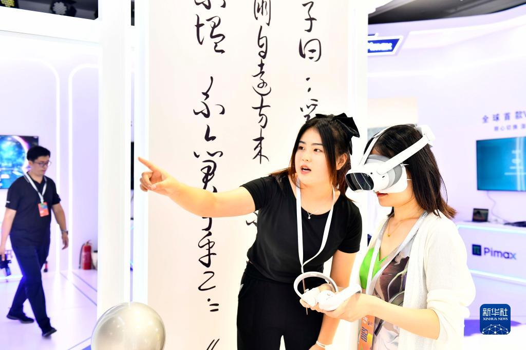 8月24日,在青島召開的2023年中國網絡視聽精品創作峰會上,與會嘉賓在智能視聽沉浸式體驗展區體驗新技術新應用。