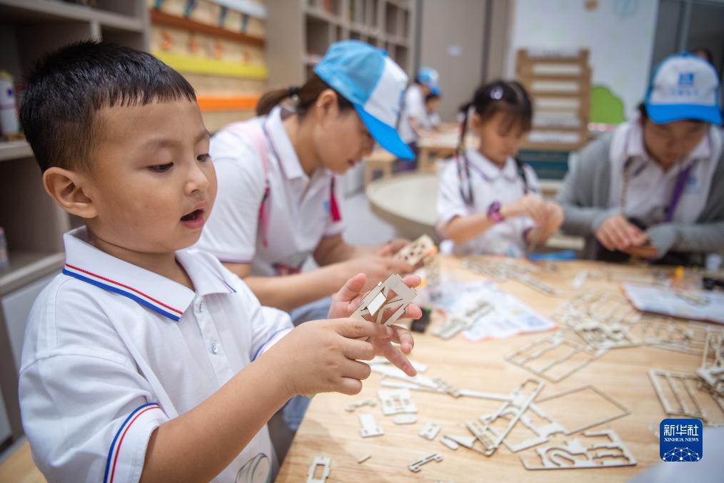 8月24日,留守兒童在中國建筑科技館體驗手工課。新華社記者 伍志尊 攝