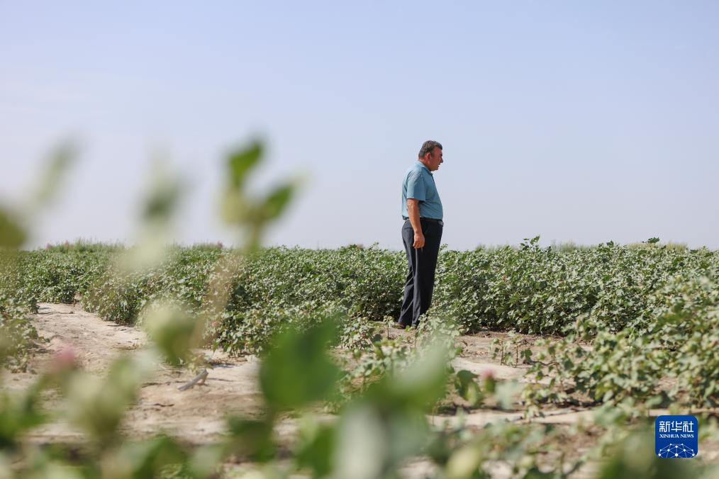 8月,正值棉花坐桃期。經過3個多月的生長,新疆尉犁縣巴西買里村棉農爾肯·熱衣木家的300多畝棉田,已經是滿眼綠意,棉桃成行。