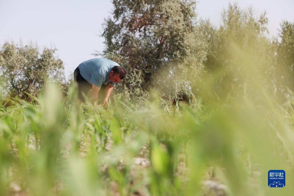 8月17日,爾肯·熱衣木查看第二茬青貯玉米生長情況,第一茬青貯玉米7月份已經收割。