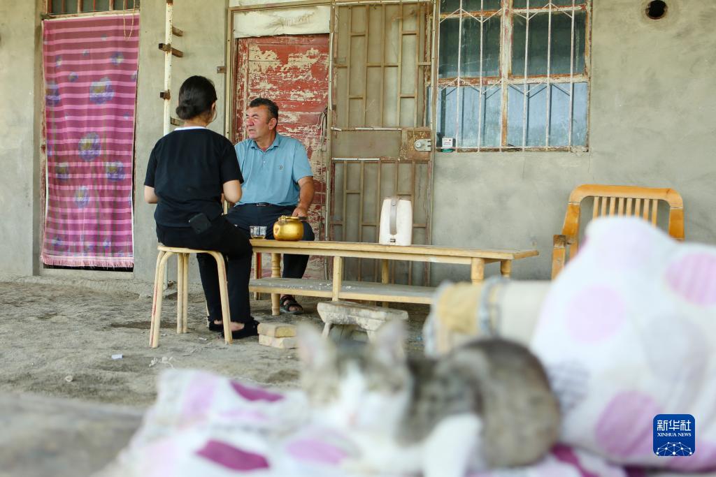8月17日,爾肯·熱衣木在棉田忙碌間隙,坐下和女兒聊天。