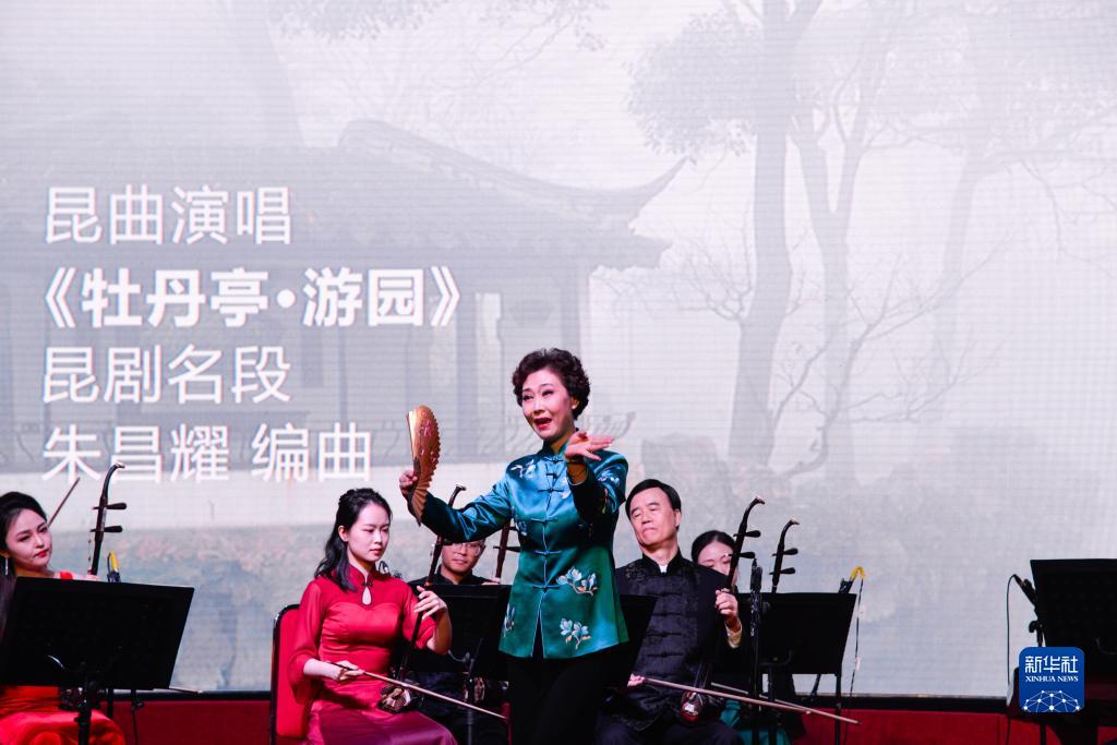 8月24日,在印度尼西亞雅加達太陽城,表演者演唱昆曲《牡丹亭·游園》。
