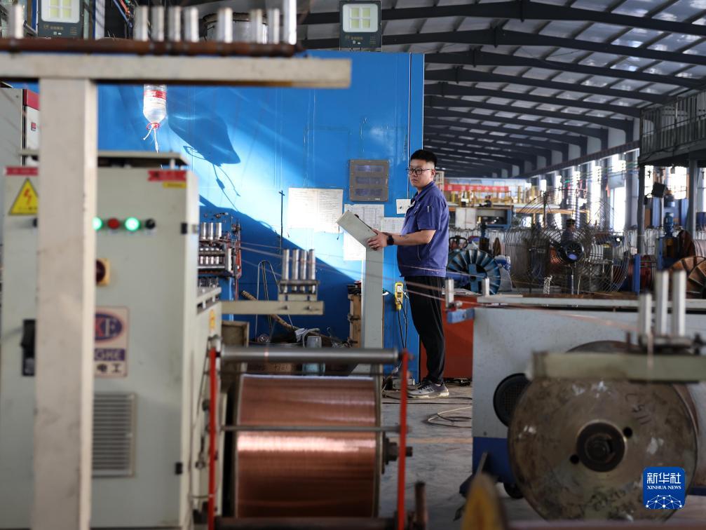 8月24日,工人在河北省邢臺市寧晉縣金世紀電纜集團有限公司生產車間工作。